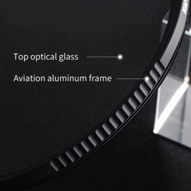 Filter je izdelan iz trpežnega aluminija in ima tanko obliko, zato ne moti širokokotnih objektivov. Ima večplastno prevleko, ki zagotavlja prozornost in odpornost proti praskam. Poleg tega ima na straneh zareze za enostavno odstranjevanje in pritrjevanje.