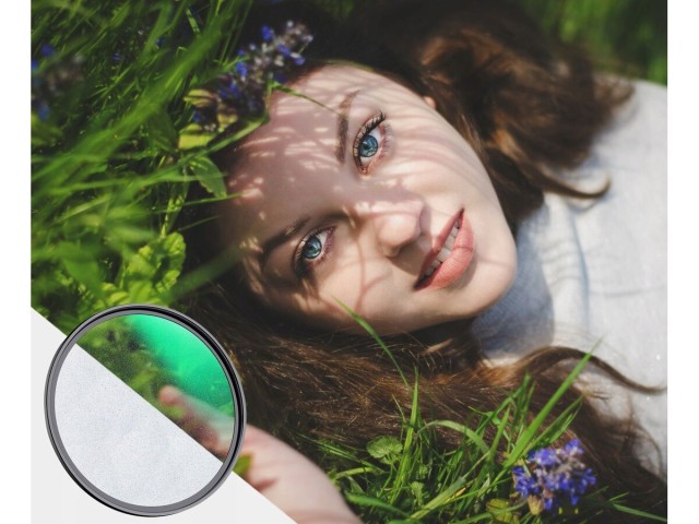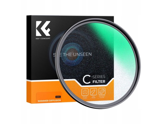 Razpršilni filter K&F 82 mm serije C Shimmer zmehča poudarke, doda sanjski sijaj in izboljša portrete z nežno razpršitvijo svetlobe, pri čemer ohrani podrobnosti za filmske, romantične slike.