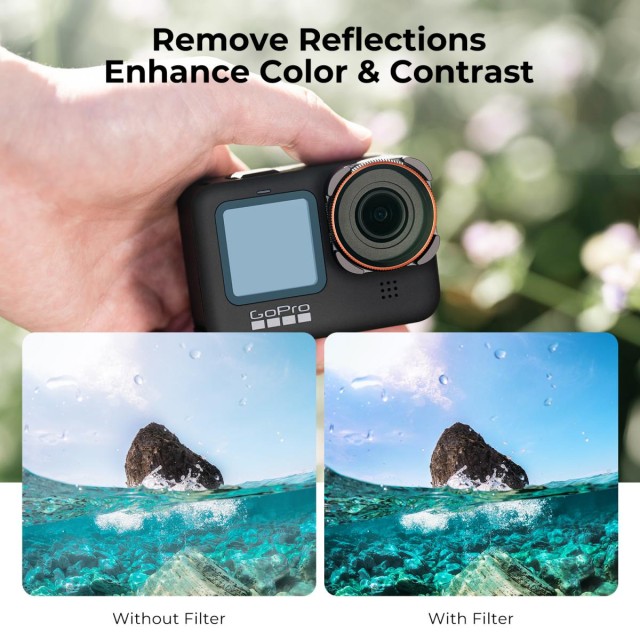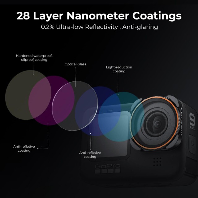 Optični stekleni filter AGC ima 28 slojev nanopovlaka, ki zmanjšuje odseve in bleščanje ter izboljšuje kakovost slike. Je vodoodporen in odporen proti obraščanju, z bajonetno zasnovo okvirja za enostavno namestitev in odstranitev. Strogo testiranje teže zagotavlja, da ne vpliva na obremenitev kardanske osi kamere, zatemnjena površina pa zmanjšuje odseve in tako zmanjšuje vpliv na slikanje.