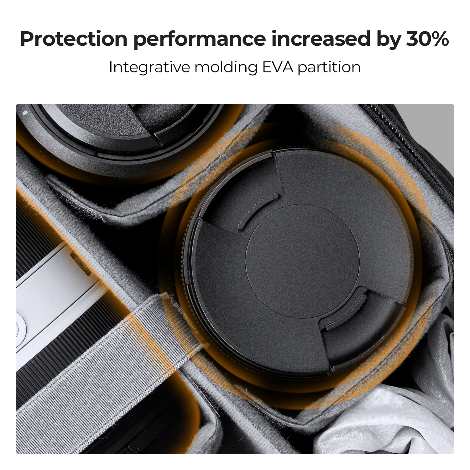 Nahrbtnik 18L. Lahka zasnova, ki upošteva največjo zaščito, varnost in udobje. Sprednje odpiranje, boljša zaščita in zaščita pred krajo, 180° popolno odpiranje, prilagodljiva predelna shranjevalna prostora, razporeditev prostora in organizacija opreme, notranji predmeti so na prvi pogled jasni, maksimalna udobnost organizacije, največ dva aparata in več objektivov,…