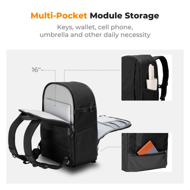 Nahrbtnik je odporen proti razlitju in trganju, izdelan je iz visokokakovostnega najlona 840D, ki je močan in trajen. Nahrbtnik ima edinstveno tehnologijo šivov in ojačitev, ki zagotavlja, da se nosilni deli ne raztrgajo ali izrabijo. Vsebuje PE ploščo + EPE penaste predelke, ki so močni in trpežni, absorbirajo udarce in zmanjšujejo pritisk.