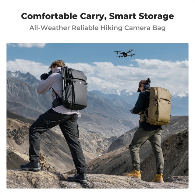 Nahrbtnik je izdelan iz visokogostotnega, odpornega proti obrabi in vodoodpornega materiala, ki zagotavlja zanesljivo zaščito pred vlago, roso in rahlim dežjem v vseh vremenskih razmerah, tako da je dragocena oprema za fotografiranje varna tudi v nepredvidljivih zunanjih okoljih. Modularni odstranljivi vložek za fotoaparat omogoča enostavno preoblikovanje nahrbtnika iz nahrbtnika za fotografiranje v standardni nahrbtnik za pohodništvo ali potovanje, kar zagotavlja odlično vsestranskost.