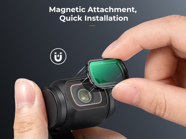Izboljšajte videografijo z DJI Osmo Pocket 3 z magnetnim filtrom K&F Concept. Črna meglica 1/4 leče z enostransko prevleko izboljša vaše posnetke z zmanjšanjem bleščanja in ustvarjanjem kinematografskega vzdušja, kar zagotavlja, da vaši vizualni posnetki izstopajo z jasnostjo in slogom.