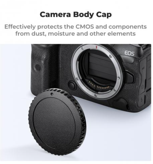 K&F Concept Canon EF Mount Protection Kit vključuje 2 pokrovčka za ohišje, 2 pokrovčka za objektiv, 2 pokrovčka za vročo stopalko in 1 krpo iz mikrovlaken za čiščenje za fotoaparate Canon EF (T7, T6, T5, T8i, T7i, 5D IV/III/II, 6D II/I, 90D, 80D). Izdelan je iz trpežnega ABS-a s tesnim bajonetnim spojem in črno površino, ki ščiti senzorje, objektive…