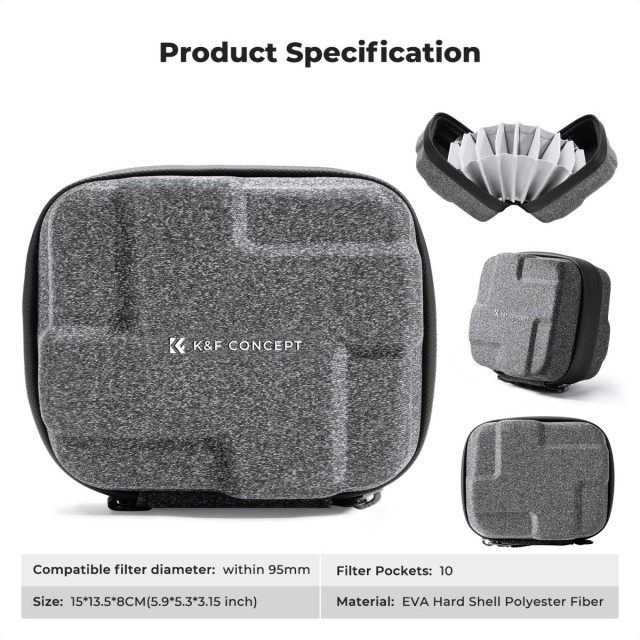 - * 【Trpežna in zaščitna zasnova】Trda EVA-maska zagotavlja odlično zaščito pred pritiskom in udarci ter ščiti vaše filtre pred poškodbami. EVA-maska je tudi vodotesna (opomba: zunanji material ni vodotesna), medtem ko vodoodporen zadrgo zagotavlja, da vaša oprema ostane suha in brez prahu, tudi v zahtevnih pogojih.
