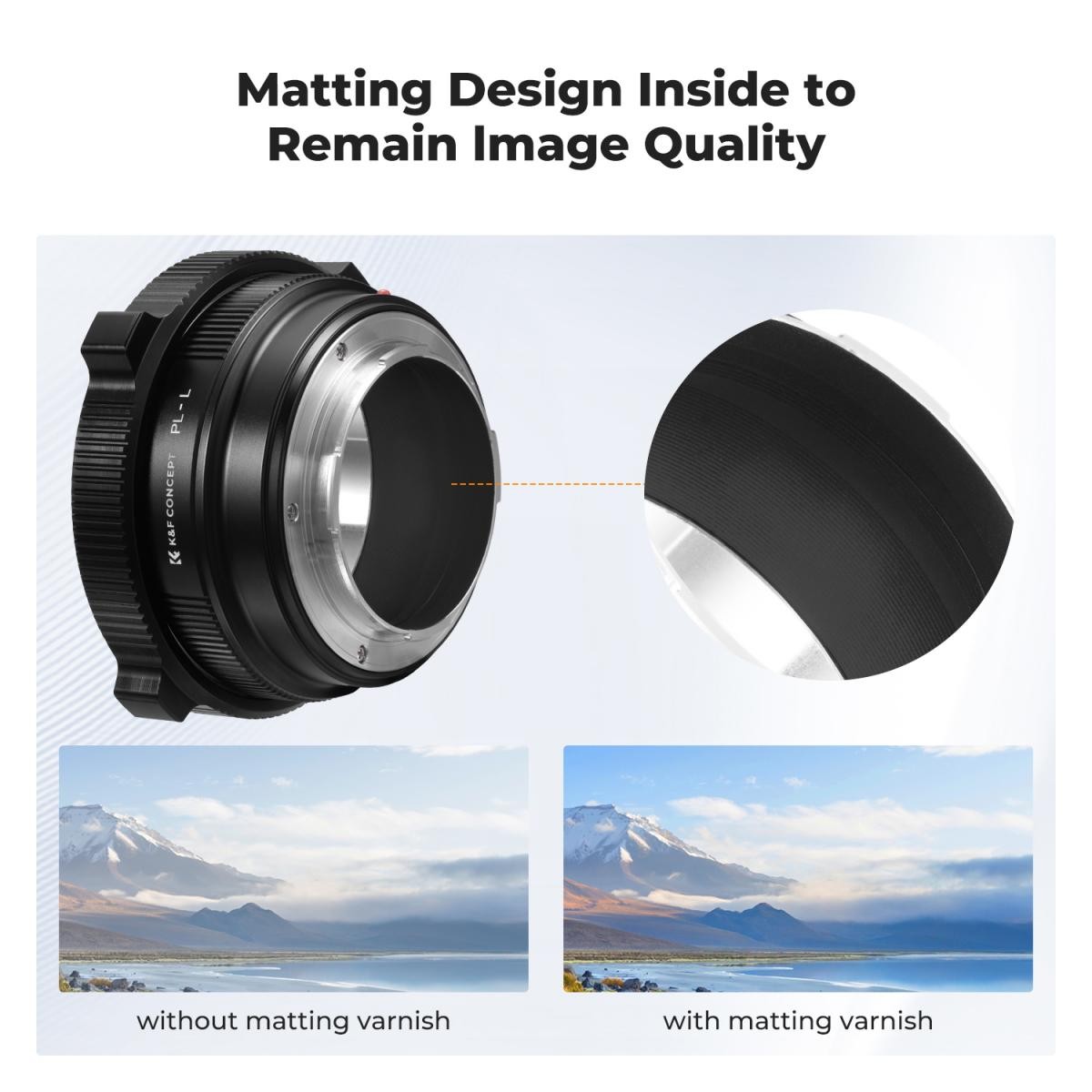 K&F Concept visoko precizni PL-L adapter: Ročni PL-L adapter z neskončnim fokusom, trdo anodiziranim aluminijem in mat notranjostjo za kamere Leica, Panasonic LUMIX in Sigma L-mount.
