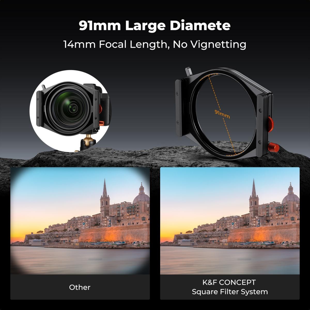 K&F Concept KF High-End Square Bracket System iz serije Nano X Pro je vrhunska rešitev za držalo filtrov, ki se ponaša z izjemno tankim dizajnom in vgrajenim 95-milimetrskim CPL-filtrom. Zasnovan je za odpravo vinjetiranja tudi pri ultra širokokotnih objektivih, nagrajeno konstrukcijo, 36-slojno nano-premazano optiko in združljivost z več velikostmi objektivov prek priloženih adapterjev.