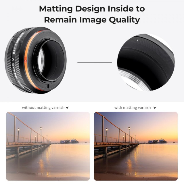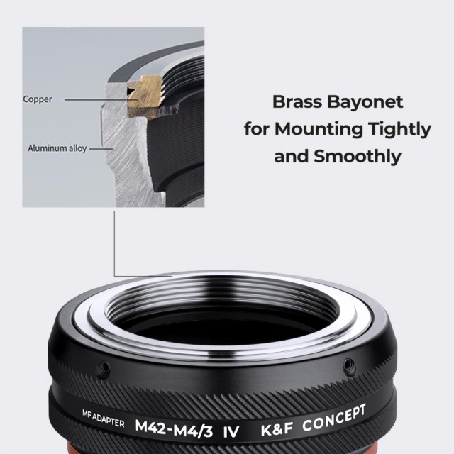 Z našim adapterskim obročem sprostite možnosti objektivov serije M42 na ohišjih serije M4/3. Ta obroč, ki se ponaša s popolnim ročnim upravljanjem in stabilno nedrsečo zasnovo za večjo varnost, mora imeti vsak fotograf. Logotip z rdečo piko zagotavlja natančno poravnavo ter olajša namestitev in demontažo. Tesna integracija povezovalnega obroča in bajoneta zagotavlja varno prileganje brez zračnosti. Ta trpežen obroček, izdelan iz zelo natančne zlitine aluminija in magnezija, omogoča udobne in nemotene makro funkcije objektiva, vključno z možnostjo ostrenja pri neskončnosti. S tem izjemnim adapterjem izboljšajte svojo fotografsko izkušnjo.
