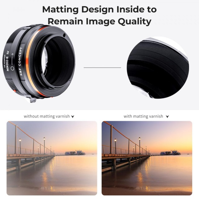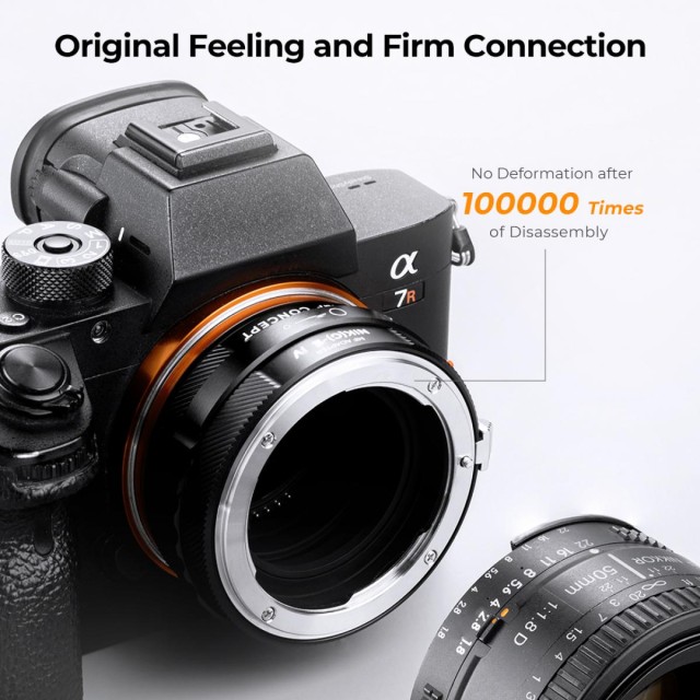 Izboljšajte svojo fotografsko izkušnjo z adapterjem za objektive Nikon serije F/D/G za Sonyjevo serijo E. Uživajte v popolnem ročnem upravljanju in varni, proti zdrsu odporni zasnovi, ki zagotavlja stabilnost in varnost med uporabo. Adapter ima logotip z rdečo piko za natančno poravnavo, kar poenostavi postopke namestitve in demontaže. Priključni obroč in bajonet sta izdelana iz zelo natančne aluminijevo-magnezijeve zlitine in se brezhibno združujeta, kar odpravlja vsakršno nevarnost ohlapnosti. Izkusite zelo natančen prenos, ki omogoča makro funkcijo in ostrenje do neskončnosti za vsestranski in vzdržljiv dodatek, ki omogoča nemoteno uporabo objektivov Nikon serije F/D/G z ohišji Sony serije E. S tem zanesljivim in kakovostnim adapterjem izboljšajte svojo fotografsko igro.