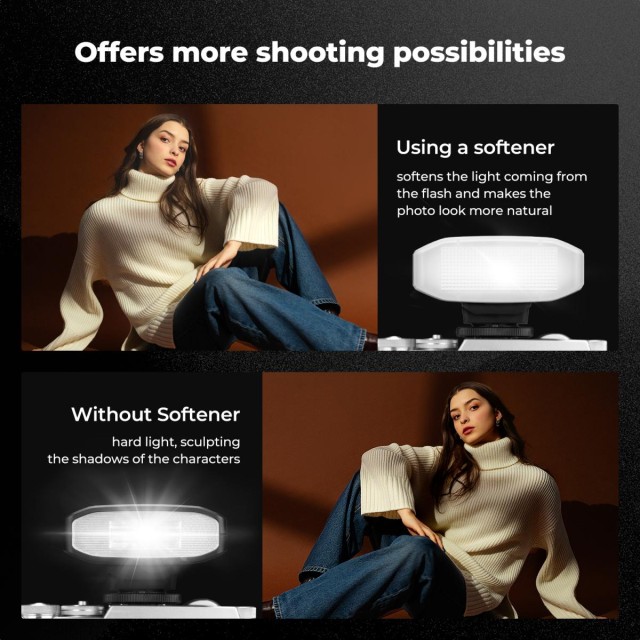 Izboljšajte svoje fotografiranje v slabih svetlobnih pogojih z mini bliskavico K&F CONCEPT KF-M01, zasnovano za DSLR in brezzrcalne fotoaparate. S svetlobno močjo GN12, barvno temperaturo dnevne svetlobe 5600 K in 8-stopenjsko nastavitvijo moči ta kompaktna bliskavica zagotavlja profesionalno osvetlitev v žepni velikosti.