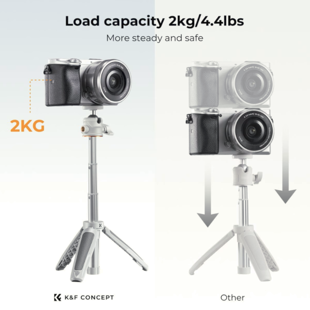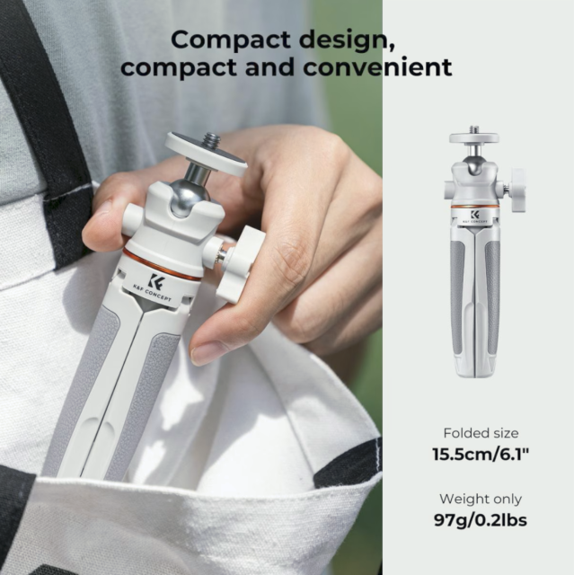 Mini stativ K&F Concept MS02 (oranžno-siv) je cenovno dostopno, a vrhunsko orodje, zasnovano za fotografiranje s pametnim telefonom, vloganje, spletno predvajanje in fotografiranje na potovanjih. Zasnovan je bil z mislijo na prenosljivost, zato se zloženo meri le 12,5–15 cm in se zlahka prilega v žep, torbo ali torbico, kar ga naredi idealnega za ustvarjalce, ki so veliko na poti. Kljub majhnosti MS02 zagotavlja izjemno stabilnost s protizdrsnimi nogami, prevlečenimi z gumo, ki zagotavljajo trden oprijem na kateri koli površini – ne glede na to, ali snemate doma, na prostem ali na snemalnem prizorišču.