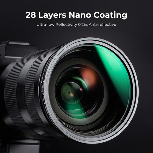 Za vzdržljivost in zmogljivost sta obe strani optičnega stekla prevlečeni z 28 sloji nano-premaza. To zagotavlja odlično odpornost proti vodi, praskam, olju in bleščanju, hkrati pa ščiti vaš objektiv in ohranja visoko jasnost slike.