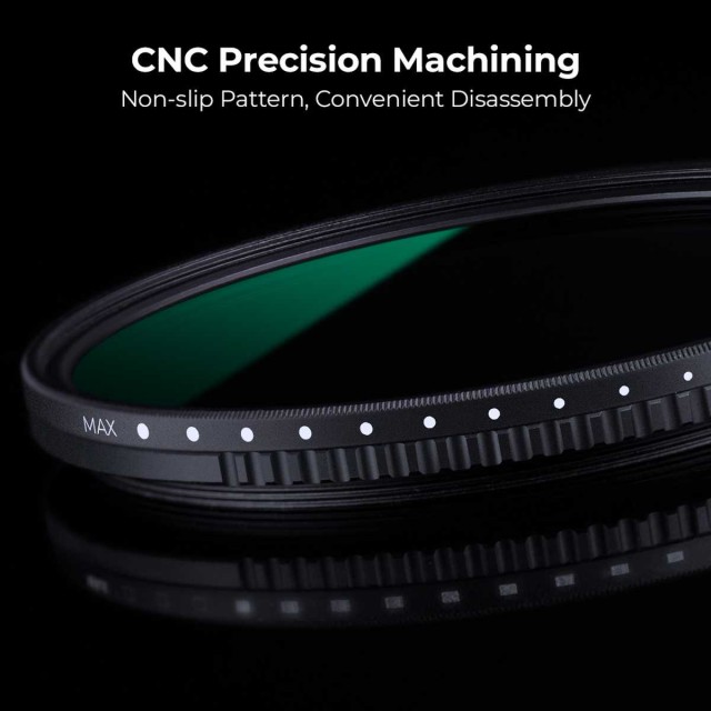 Filter ND8-ND2000 Nano-X Variable ND Filter podjetja KF Concept je 77 mm filter s spremenljivo nevtralno gostoto, ki omogoča nastavljivo zmanjšanje svetlobe od 3 do 11 stopenj. Enakomerno zatemni celotno območje slike, kar omogoča fotografiranje z daljšim časom zaklopa ali širšo zaslonko, kot je običajno potrebno. Z upočasnitvijo hitrosti zaklopa povečate osvetlitev, kar vam omogoča, da povečate zamegljenost slike in poudarite gibanje, na primer pri fotografiranju tekoče vode. Povečanje zaslonke pa omogoča natančnejši nadzor nad globinsko ostrino, kar je koristno, ko poskušate izolirati predmet ali izboljšati bokeh. Ta nastavljivi filter je še posebej uporaben pri fotografiranju pokrajin in v zelo svetlih svetlobnih pogojih, uporabljate pa ga lahko tako za fotografiranje kot za snemanje videoposnetkov.