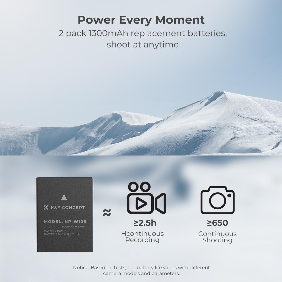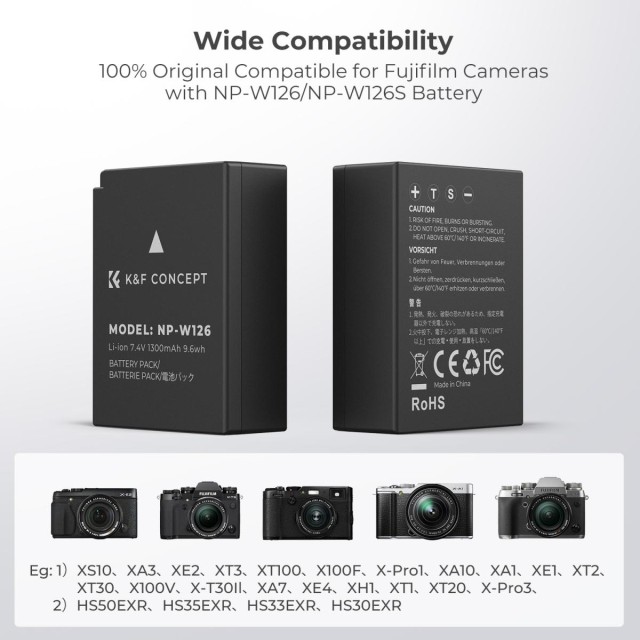 Komplet dvojne baterije in polnilnika K&F CONCEPT NP-W126, zasnovan za fotografe in ustvarjalce vsebin, ki potrebujejo daljši čas snemanja, ponuja praktično in učinkovito rešitev za napajanje izbranih fotoaparatov Fujifilm. Komplet vključuje dve nadomestni bateriji NP-W126 s kapaciteto 1300 mAh, ki vam zagotavljata dovolj rezervne energije za dolga snemanja brez prekinitev.