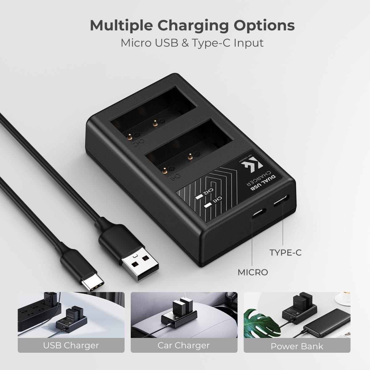 Popolnoma dekodirane baterije zagotavljajo standardno združljivost in nemoteno komunikacijo s podprtimi fotoaparati, hkrati pa podpirajo tudi originalne polnilnike Fujifilm. Priloženi dvo-kanalni polnilnik omogoča hkratno polnjenje dveh baterij in ima vhodna vrata Micro-USB in USB-C za vsestransko polnjenje. Polnilnik lahko napajate prek power banke, USB-stenskega adapterja, prenosnega računalnika ali avtomobilskega polnilnika za maksimalno udobje.