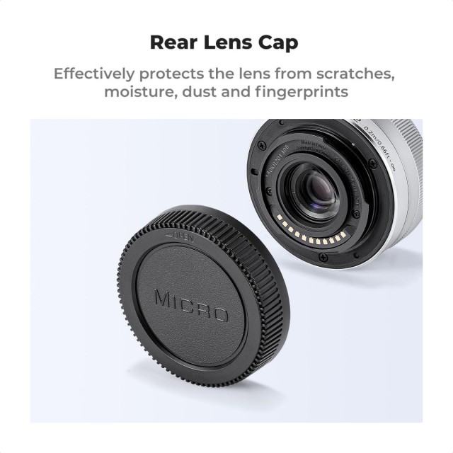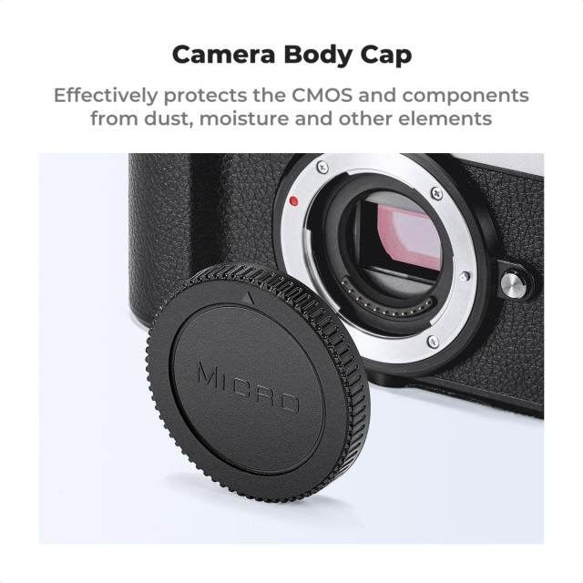 S kompletom za zaščito in čiščenje K&F Concept 7-Piece Protection & Cleaning Kit ohranite svojo opremo Olympus Micro Four Thirds v brezhibnem stanju. Ta celovit komplet, zasnovan posebej za sisteme Olympus M4/3, vključuje dva pokrova za ohišje, dva pokrova za zadnji del objektiva, dva pokrova za vročo stopalko in vrhunsko krpo za čiščenje iz mikrovlaken. Vsak pokrovček je izdelan iz udarno odporne, lahke ABS plastike z trpežno, padcem odporno površino in zagotavlja zanesljivo fizično in okoljsko zaščito pred prahom, vlago, prstnimi odtisi in praskami. Pokrovčki v bajonetnem slogu so natančno izdelani v skladu s specifikacijami Olympusovega nastavka in se namestijo z varno zasukno zaporo, ki zagotavlja nepredušno tesnjenje, ko je vaš fotoaparat ali objektiv shranjen. Elegantna črna površina se brezhibno ujema z estetiko vaše opreme. Združljiv z Olympus E-M1X, E-M1 II, E-M5 III, E-M10 IV, E-PL9, E-PL8, E-P7 in vsemi objektivi M4/3. Potujte, fotografirajte in shranjujte z zaupanjem – vaš senzor, elementi objektiva in vroča stopala ostanejo zaščiteni.