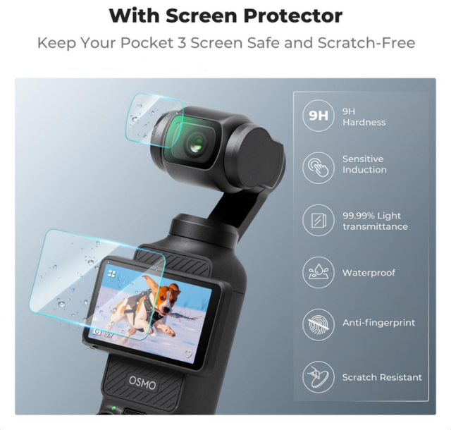 - Zaščita zaslona iz kaljenega stekla, odporna proti eksploziji: Zaščita zaslona je izdelana iz visokokakovostnega kaljenega stekla 9H in zagotavlja odlično odpornost proti praskam ter zaščito pred ostrimi predmeti, kot so ključi in noži, kar zagotavlja, da bo zaslon fotoaparata varen in nepoškodovan.