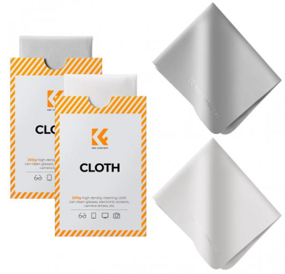 K&F Concept 2-Pack Premium Microfiber Cleaning Cloths (6 x 7" / 15 x 18 cm) so krpe za čiščenje iz visokokakovostne mikrovlaken (200 g/m²), ki ne puščajo vlaken in imajo ravne robove za čiščenje celotne površine. So pralne, ponovno uporabne in idealne za čiščenje leč, zaslonov, očal, fotoaparatov, tabličnih računalnikov in optike.