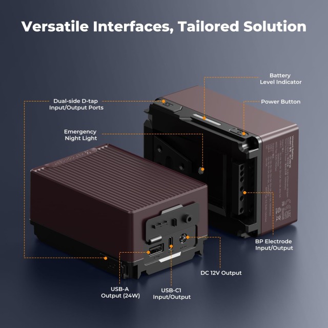združljivost baterije V Mount 99 Wh: Ta baterija V-Mount ima dva D-TAP vrata, USB-C, USB-A, 12 V (5,5 x 2,5 mm), BP, za kamero, kamkorder, monitor, LED video luči, tablico, telefon in prenosni računalnik itd
