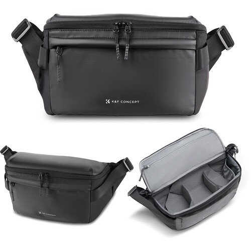 Vsestranska torba Nature Wander Sling Bag znamke K&F Concept je izdelana iz vremensko odporne najlonske tkanine in ima nastavljive notranje predelke za prilagojeno shranjevanje. Pas je nastavljiv za udobno nošenje. Opremljena je s trakovi za pritrditev stativa in žepom za plastenko z vodo.