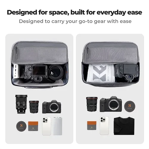 Torba K&F Concept KF13.212 Urban Wander Camera Bag, zasnovana za sodobne fotografe in mestne pustolovce, ponuja popolno ravnovesje med stilom, zaščito in praktičnostjo. S prostornino 10 litrov je ta kompaktna, a prostorna torba idealna za prenašanje vaše foto opreme, vsakodnevnih potrebščin ali celo majhnega drona. Vremensko odporna zunanjost torbe in trpežni vodoodporni materiali vašo opremo varujejo pred dežjem, prahom in naključnimi brizgi – idealno za fotografiranje v mestu in potovanja na prostem. Prilagodljivi oblazinjeni predelki omogočajo fleksibilno organizacijo vaše kamere, objektivov in dodatkov, medtem ko stranski odprtina za hiter dostop zagotavlja, da ne boste nikoli zamudili posnetka.