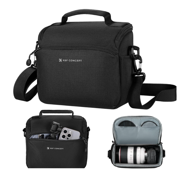 K&F Concept Urban Wander Sling Camera Bag (5L, črna) je elegantna, ultralahka torba za prek ramena, ki tehta 0,61 funta in meri 9,1 × 7,3 × 5,1 palca zunanje (8,3 × 6,8 × 4,3 palca notranje), izdelana iz visokogostotnega platna 300D z vodoodpornostjo in priloženim dežnim pokrovom za zaščito v vseh vremenskih razmerah. Hitra dostopnost z dvojnim…