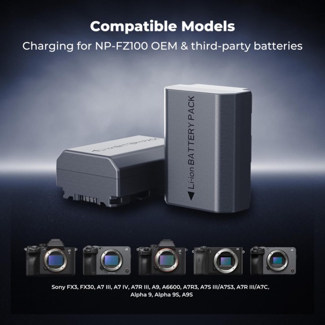 Sony NP-FZ100 18W modularni hitri polnilnik in komplet baterij, baterija z veliko zmogljivostjo 2600 mAh za Sony A7iii, A7R V, IV, Alpha A7C, A6700, ILCE-1M2, A7R3, ZV-E1, FX3, FX30.