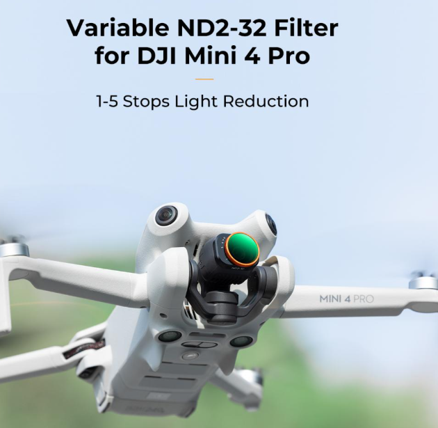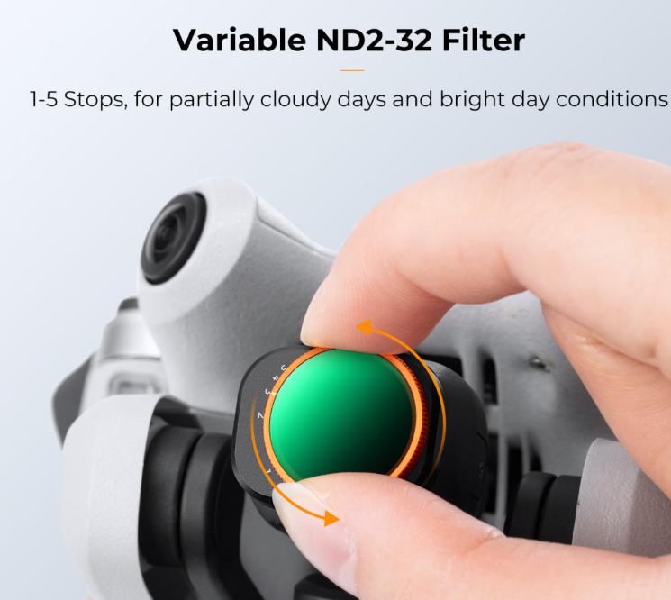 Izboljšajte svojo zračno kinematografijo s filtrom K&F Concept Variable ND2-32, lahkim filtrom nevtralne gostote, optimiziranim za dron, ki je bil zasnovan izključno za DJI Mini 4 Pro, da zagotavlja profesionalno fleksibilnost osvetlitve brez kompromisov. Ta omejen spremenljiv ND filter omogoča neprekinjeno zmanjšanje svetlobe za 1–5 stopenj (ND2 do ND32) in pilotom omogoča natančno nastavitev svetlosti za bolj gladke videoposnetke, krajše čase zaklopa in umetniško zameglitev gibanja med leti v zlati uri, oblačnimi prehodi ali sončnimi zahodi v mestih – vse to ob ohranjanju realističnih barv, ostrine od roba do roba in uravnoteženega kontrasta.