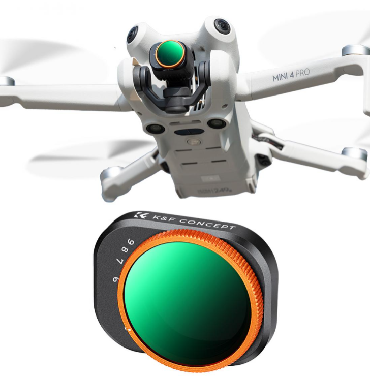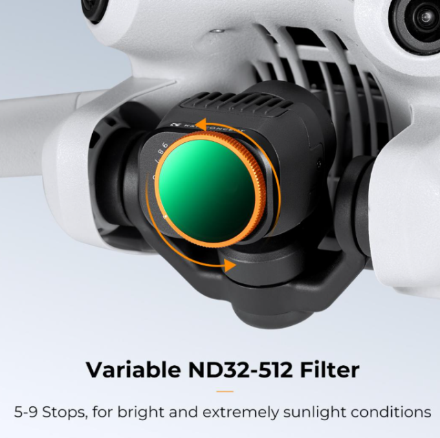 Preoblikujte svojo snemanje z dronom s filtrom K&F Concept Variable ND32-512, bistveno nadgradnjo, posebej zasnovano za DJI Mini 4 Pro, da premaga intenzivno sončno svetlobo in omogoči profesionalno nadzorovanje osvetlitve med letom. Ta spremenljivi filter nevtralne gostote omogoča brezhibno nastavljivost od ND32 (5 stopenj) do ND512 (9 stopenj) in pilotom omogoča natančno nastavitev svetlobnega vnosa za gladke posnetke iz zraka, dramatične dolge ekspozicije oblakov ali valov ali učinke plitve globine polja – vse to ob ohranjanju živahnih barv, ostrih podrobnosti in naravnega kontrasta brez neželenih odtenkov ali artefaktov, ki pestijo manj kakovostne filtre.