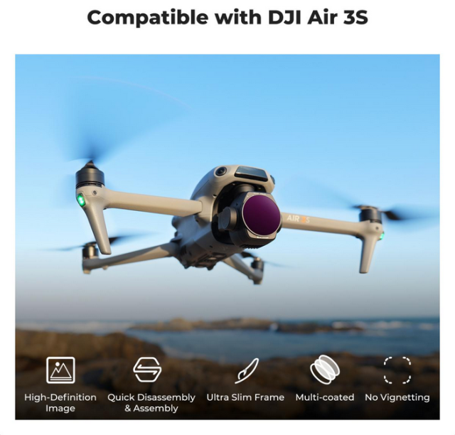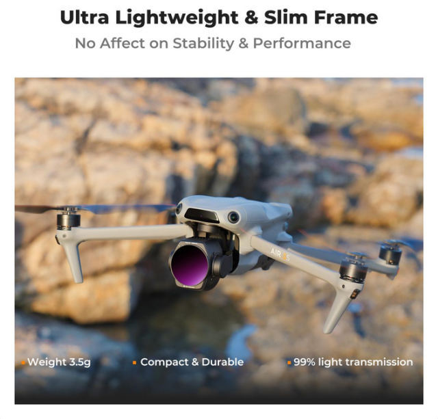 K&F DJI AIR 3S 4pcs Filter Kit: ND8&PL, ND16&PL, ND32&PL, ND64&PL filtri, zasnovani za sisteme z dvema kamerama. Dosegite natančen nadzor nad osvetlitvijo, zmanjšajte odseve in brez težav izboljšajte kakovost slike.