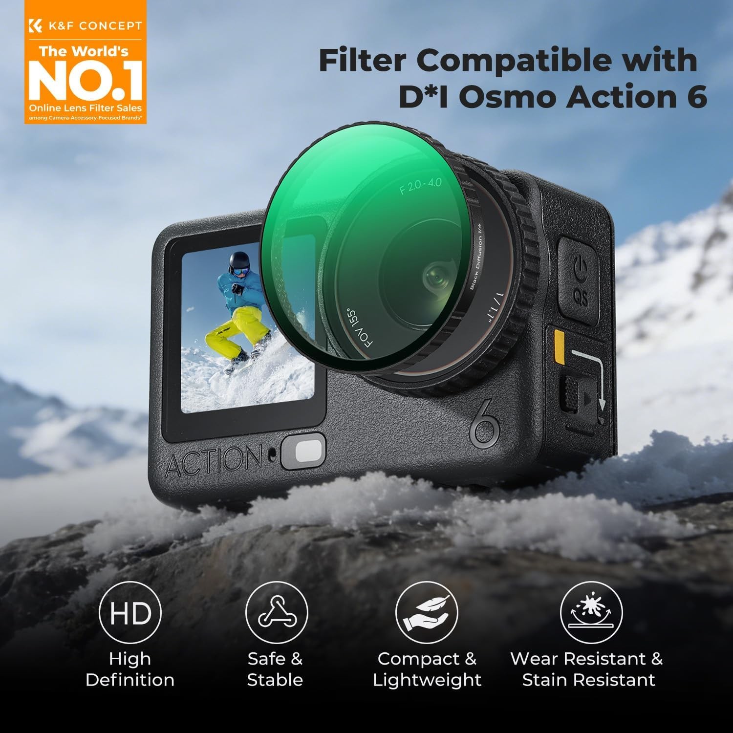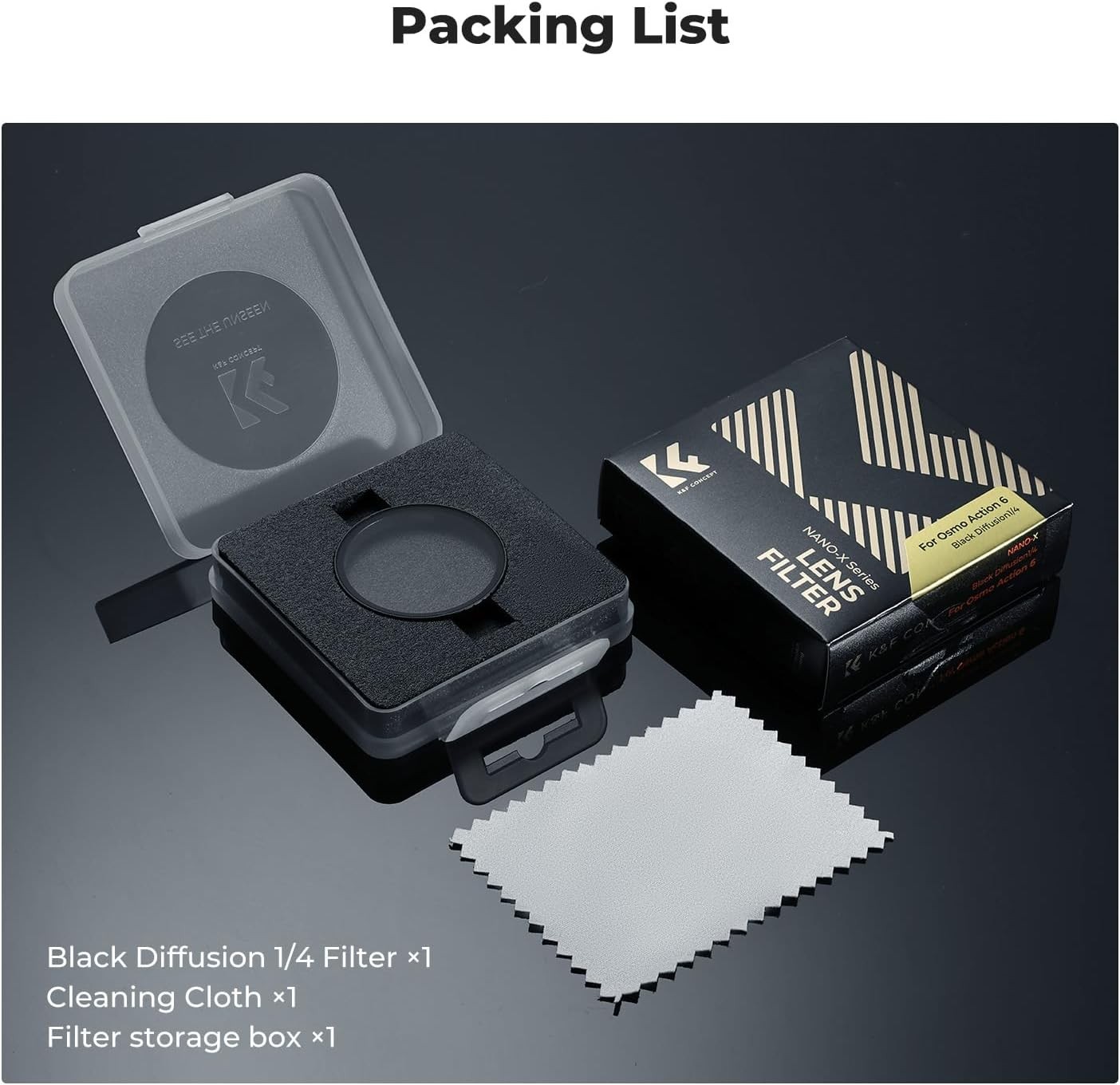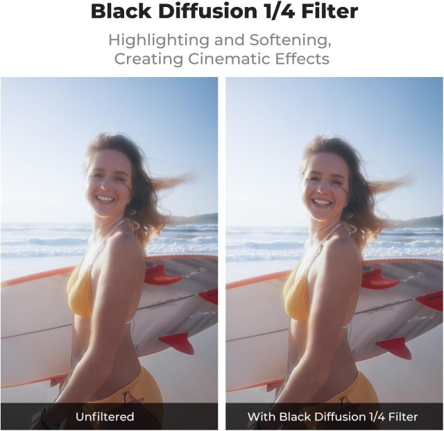 K&F Concept Black Soft 1/4 Filter za DJI Osmo Action 6 je visokoločljiv difuzijski filter, zasnovan za mehak, kinematografski videz z hitro in varno namestitvijo. Opremljen je s premium optičnim steklom in naprednim 28-slojnim nano premazom, ki nežno mehča svetlobne poudarke in zmanjšuje bleščanje, hkrati pa ohranja ostrino slike – idealno za ustvarjalce, ki iščejo sanjsko, filmsko estetiko v akcijskih posnetkih.