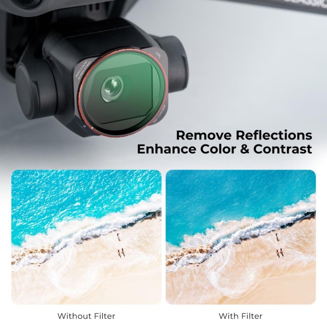 Filter K&F Concept CPL, posebej zasnovan za DJI Mavic 3 Classic, pomaga letalskim fotografom in videografom zajeti bogatejše barve in jasnejše podrobnosti, saj učinkovito zmanjša odsevanje z nekovinskih površin, kot so voda, steklo in listje. Krožni polarizacijski učinek poveča kontrast, poglobi modro nebo in izboljša splošno nasičenost barv brez uvedbe barvnega odtenka.