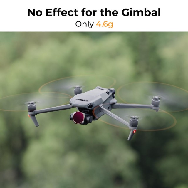 Zahvaljujoč natančnemu bajonetnemu nastavku se filter brez težav namesti na objektiv kamere Mavic 3 Classic, kar omogoča hitro namestitev in odstranitev. Teža filtra je le 3,2 g, natančno pa je preizkušen, da ne vpliva na ravnotežje gimbala ali letalske zmogljivosti, kar ga naredi zanesljivo orodje za profesionalno letalsko fotografijo in videografijo.