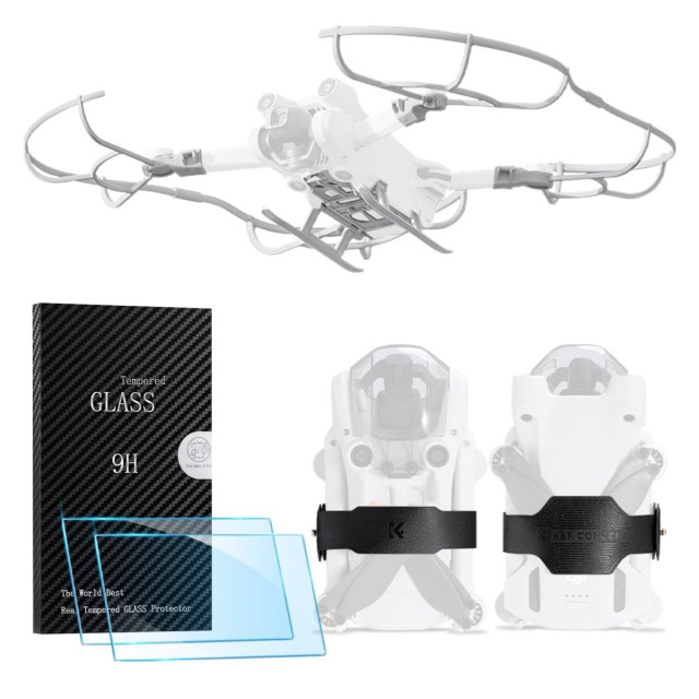 DJI Mini 3 PRO Zaščitna folija za daljinski upravljalnik z zaslonom (v paketu 2 kosa) + povišano pristajalno podvozje + obroč proti trčenju propelerja + paket propelerja, 4 v 1 kompletu