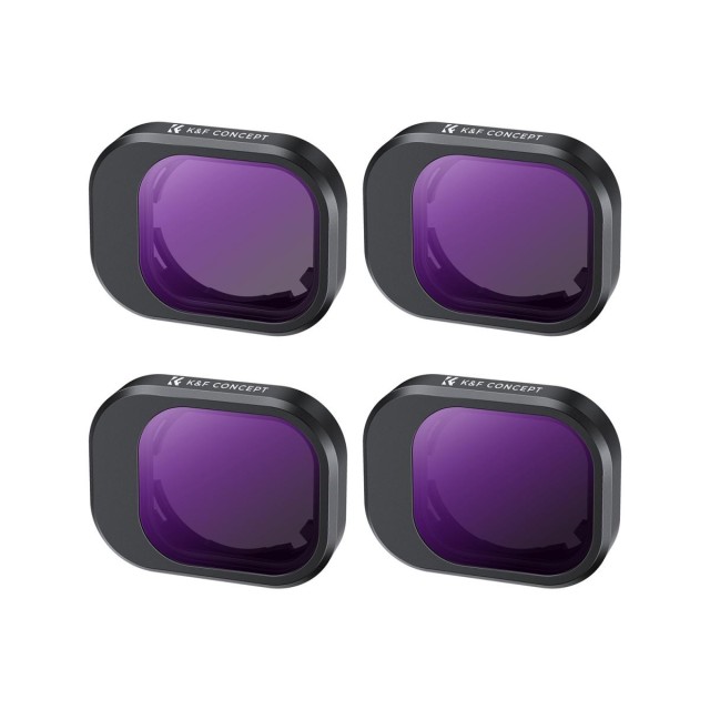 Komplet filtrov DJI Mini 4 Pro ND. K&F Concept ND filter kit za DJI Mini 4 Pro 4 pakiranja zagotavlja 3-6 stopenjsko zmanjšanje svetlobe in poskrbi za vaše potrebe za celodnevno zabavo, od oblačnih dni do svetlih sončnih dni.
