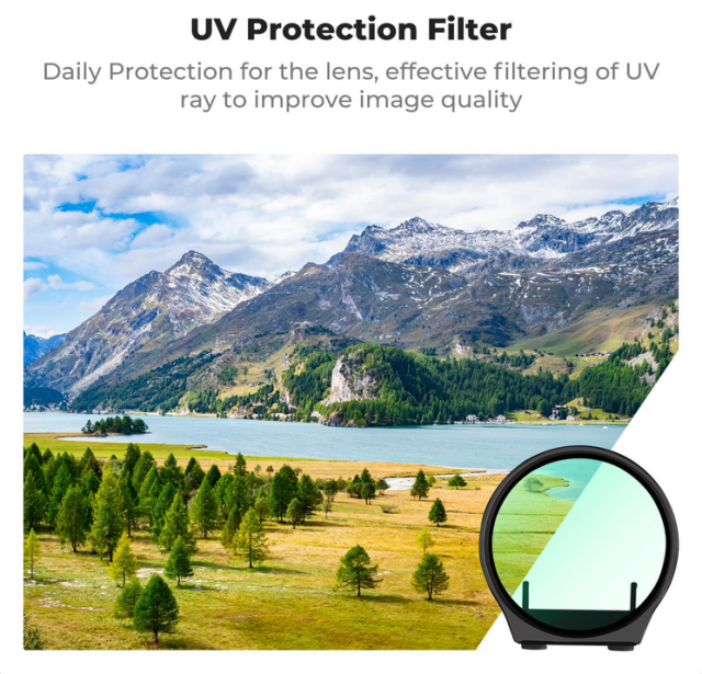 Filter K&F DJI NEO UV zagotavlja zaščito leč in preprečevanje UV žarkov za brezpilotna letala DJI. Izdelan je iz optičnega stekla AGC z 28 večplastnimi premazi in zagotavlja minimalen odsev, izboljšano jasnost slike in varnost kardana, hkrati pa se popolnoma prilega kameri drona.