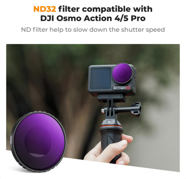 Filter K&F ND32 za DJI Osmo Action 4/Osmo Action 5 Pro je nepogrešljiv pripomoček za fotografe in snemalce, ki želijo natančno nadzorovati osvetlitev. Ta filter profesionalnega razreda je zasnovan tako, da zmanjša svetlobo za 5 stopenj, zato je idealen za snemanje v delno oblačnih razmerah, hkrati pa ohranja naravne barve brez premikov.