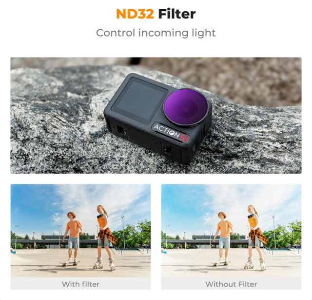 Ne glede na to, ali snemate dogodivščine na močni sončni svetlobi ali v oblačnem vremenu, ta filter ND32 izboljša delovanje vaše kamere DJI Osmo Action 4/5 Pro ter zagotavlja jasne, živahne in neizkrivljene slike.