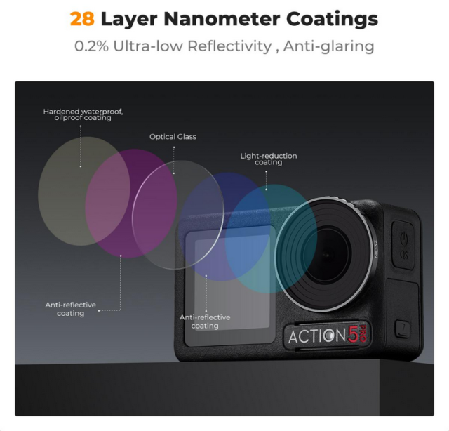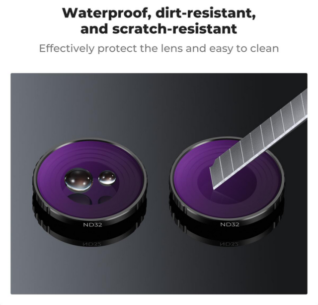 Izboljšajte svoje posnetke s filtrom K&F ND32 za DJI Osmo Action 4/Osmo Action 5 Pro. Ta objektiv visoke ločljivosti zmanjša svetlobo za 5 stopenj, ima antirefleksni premaz in zagotavlja vrhunsko kakovost slike s trajno, vodoodporno zaščito.