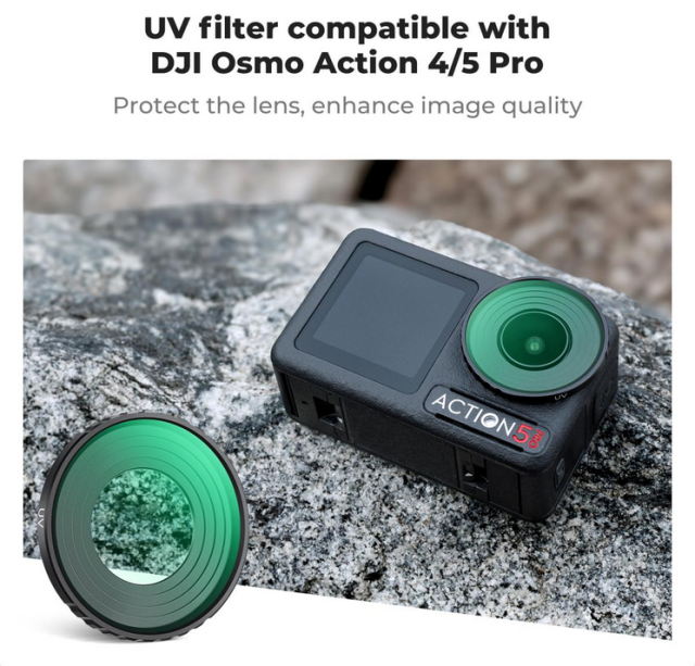 Ta UV-filter je popoln za pustolovce na prostem, saj je vsestranski dodatek, ki ščiti in izboljšuje zmogljivost vašega fotoaparata DJI Osmo Action 4/5 Pro v vsakem okolju.