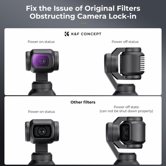 K&F Concept ND filtri za DJI Osmo Pocket 3 so zasnovani tako, da se popolnoma prilegajo modelu akcijske kamere in so nizkoprofilnega videza. Ti filtri ND pomagajo pri nadzoru svetlobe v različnih pogojih, zlasti pri fotografiranju in snemanju na prostem, ter zagotavljajo višjo kakovost profesionalnih slik in videoposnetkov.