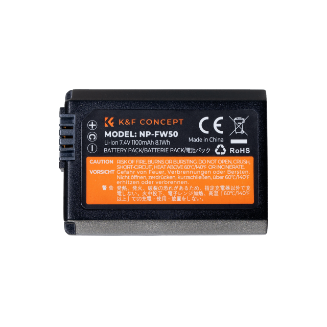 Baterije za fotoaparate K&F Concept, kot je ta, enakovredna Sony FW-50, so narejene z litij-ionsko kemijo, ki zagotavlja varno in zanesljivo delovanje. Med prednostmi uporabe litija za baterije je, da nimajo "spominskega učinka". To se zgodi, ko se baterija izprazni in se nato nikoli več ne more napolniti do polne zmogljivosti. Naše baterije so certificirane po strogih merilih zahtev CE in RoHS, kar dodatno zagotavlja njihovo varnost in vaš mir. Te baterije imajo enoletno garancijo, ki vas ščiti pred kakršnimi koli napakami pri izdelavi ali okvarami.