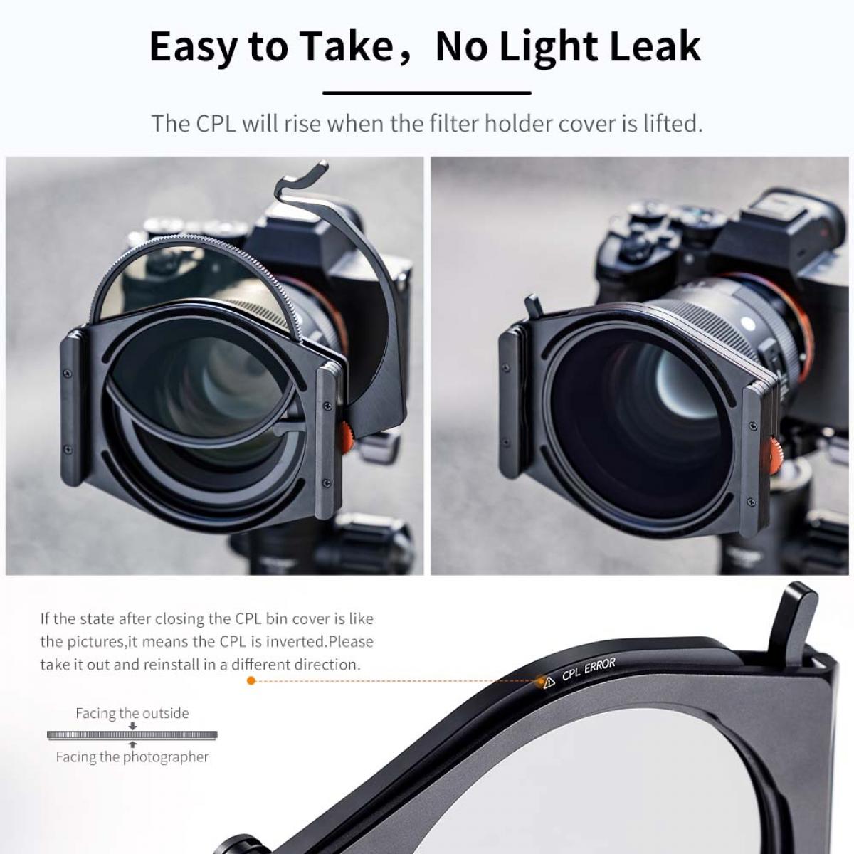 Kvadratni okvir filtra lahko zaščiti objektiv pred padcem z višine 1,5 metra na ravna tla, ne da bi se odlomil.