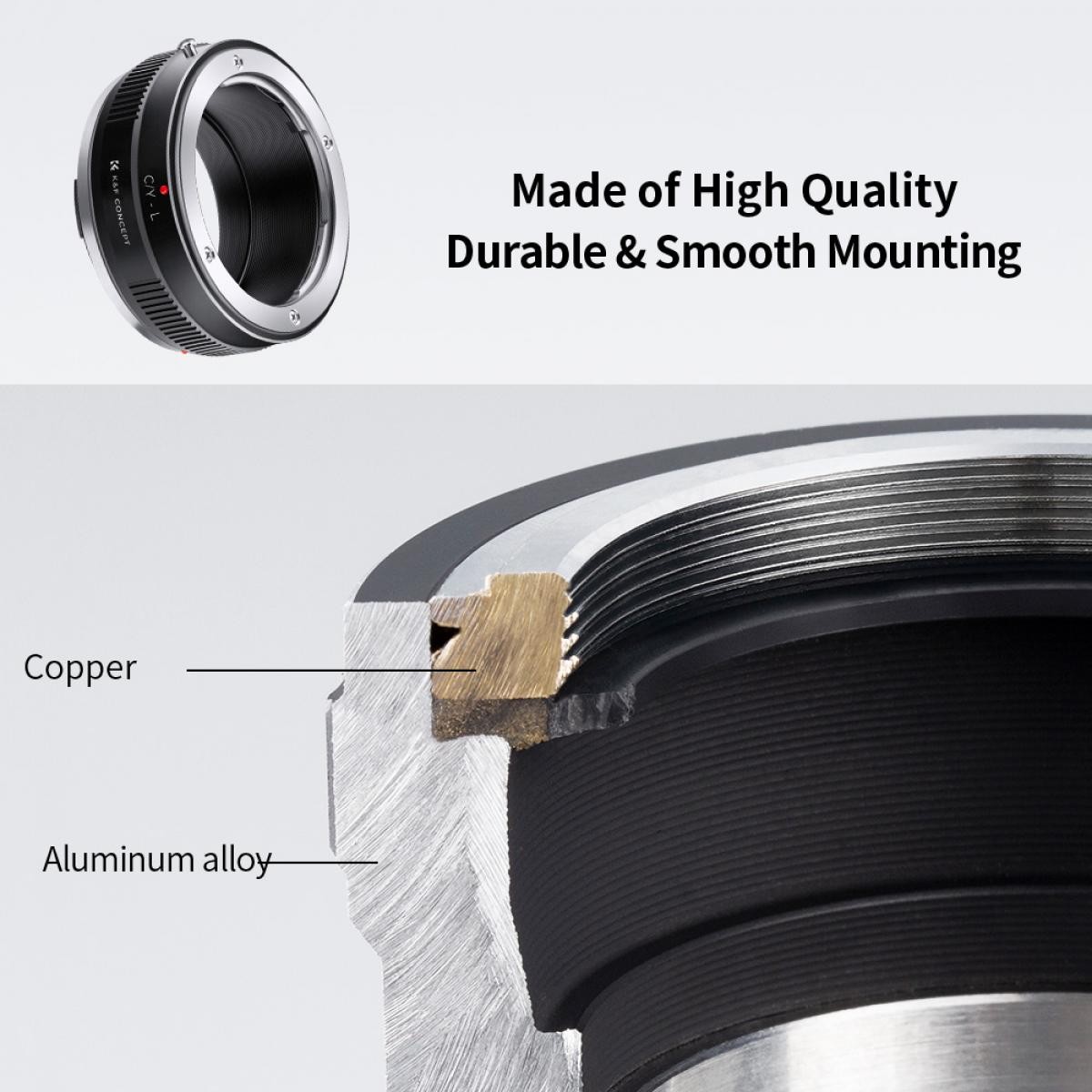 Ročni adapter za ostrenje K& amp;amp;F Concept C/Y-L je združljiv z objektiviContax/Yashica (C/Y) za kamere z L-mountom.