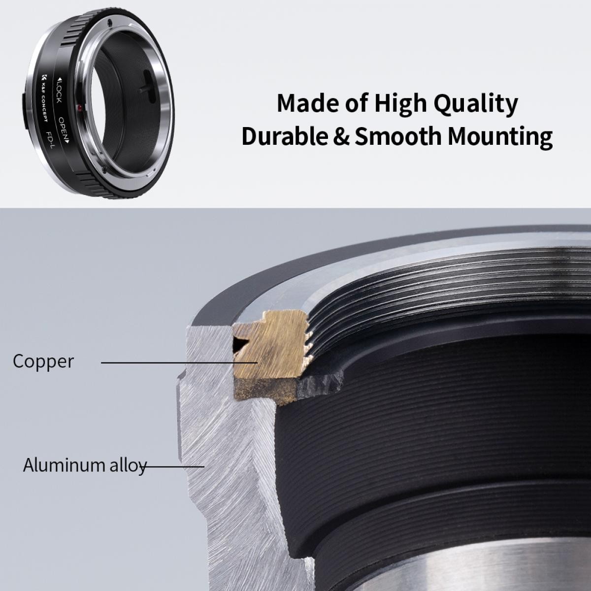 Ročni adapter za ostrenje K& amp;amp;F Concept FD-L je združljiv z objektivi Canon FD in FL za kamere z L-mountom.