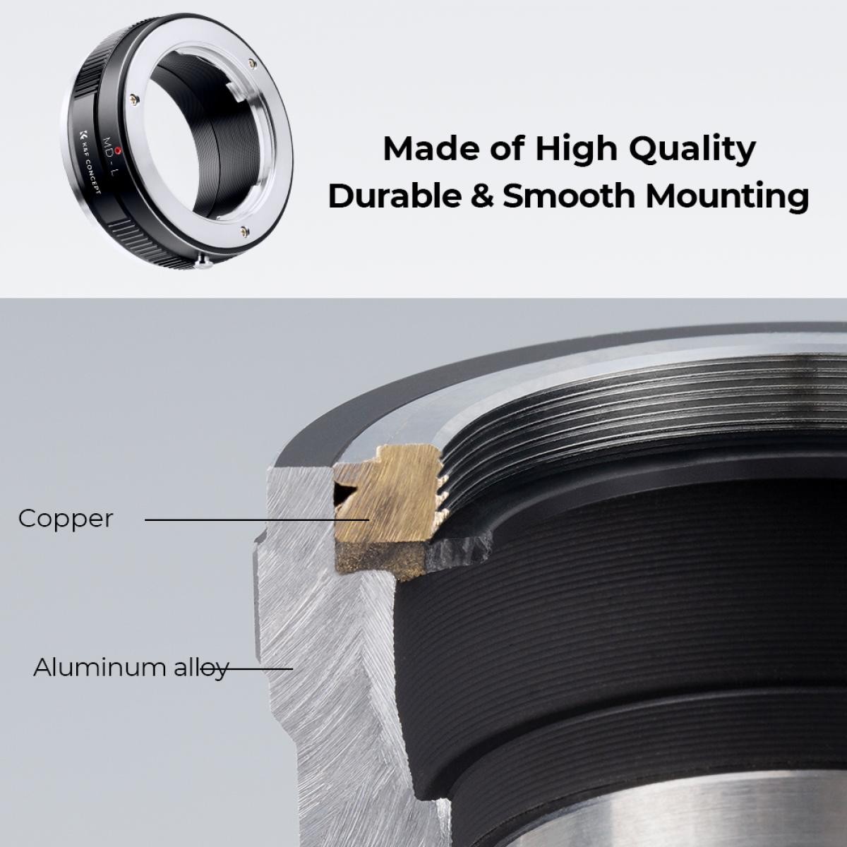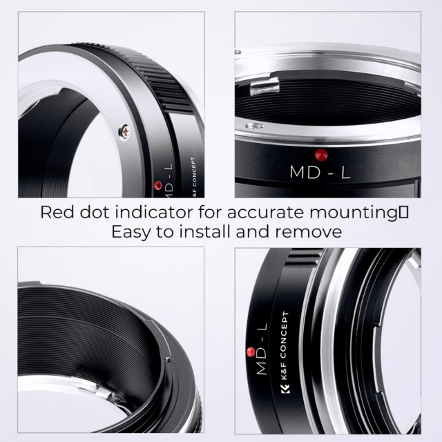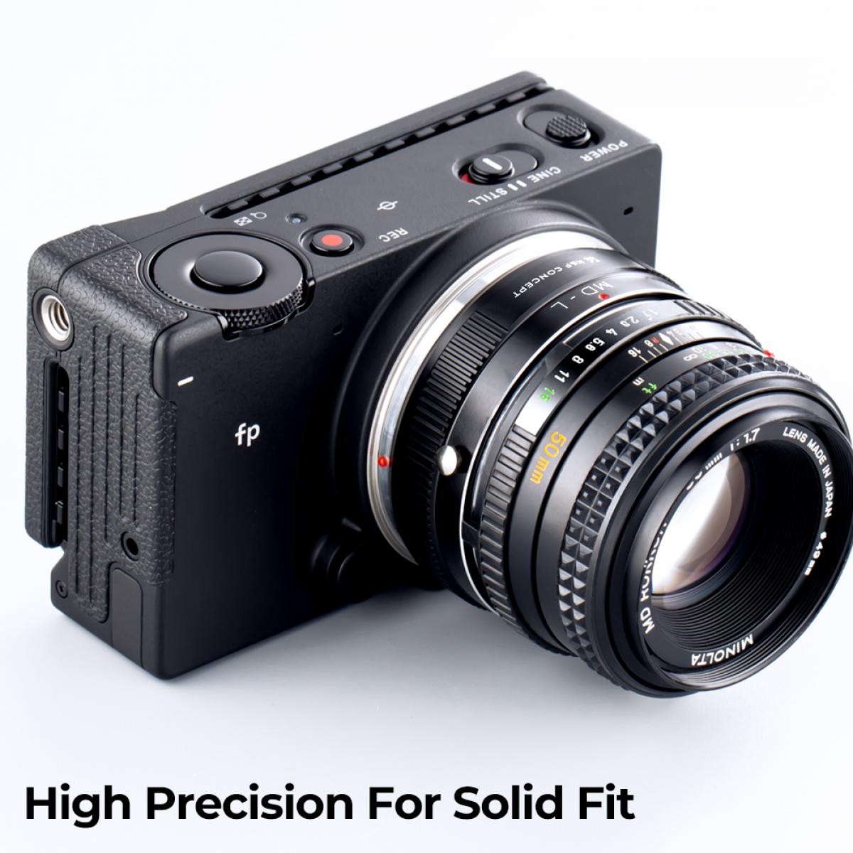 Ročni adapter za ostrenje K& amp;amp;F Concept MD-L je združljiv z objektivi Minolta Rokkor (SR/MD/MC) za kamere z L-mountom.