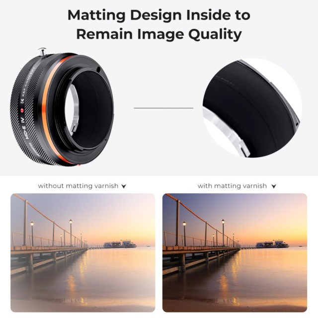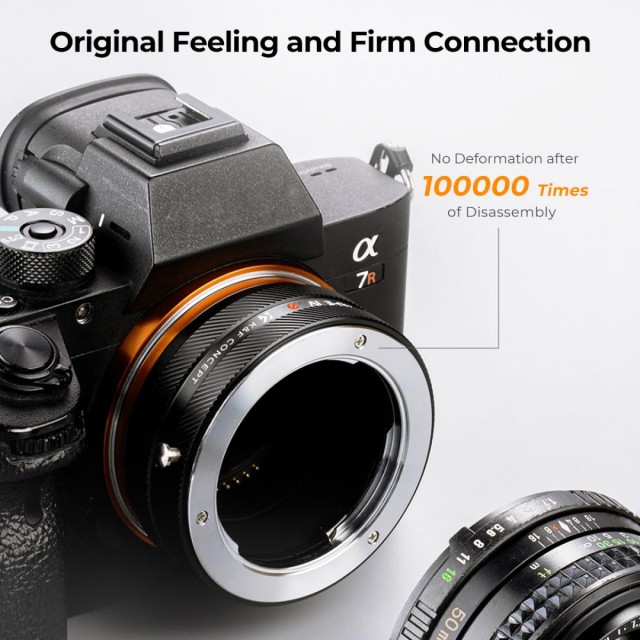 • K&F CONCEPT ponuja okoli 300 vrst adapterjev za objektive, ki omogočajo nemoteno združljivost objektivov in kamer različnih velikosti. Naši adapterji za objektive so profesionalno zasnovani in izdelani, kar omogoča profesionalcem obnovitev starih objektivov. Povezava z vsemi vašimi zmogljivimi orodji še nikoli ni bila tako enostavna.
