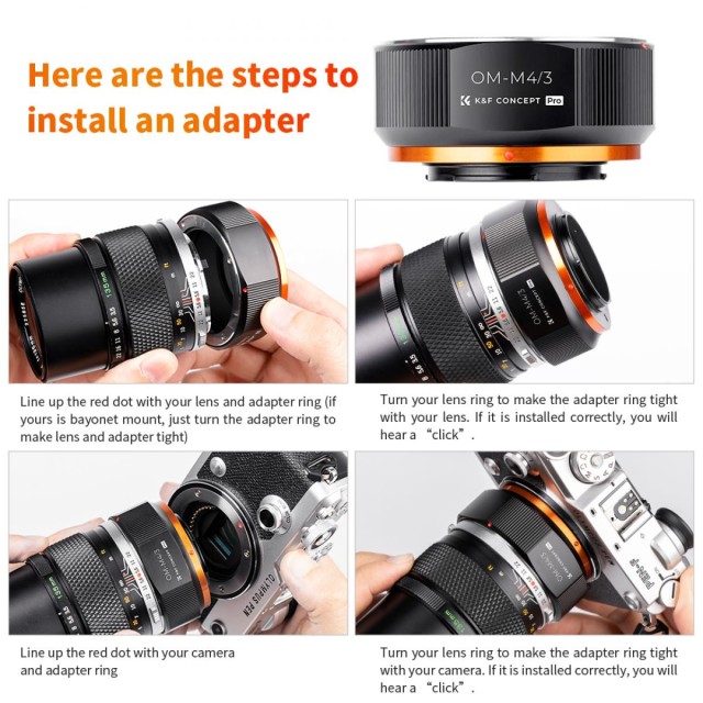 Ročni adapter za ostrenje K& amp;amp;F Concept OM-M4/3 je združljiv z objektivi Olympus OM za fotoaparate Micro Four Thirds M4/3 Olympus Pen.