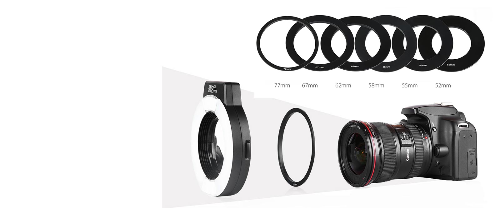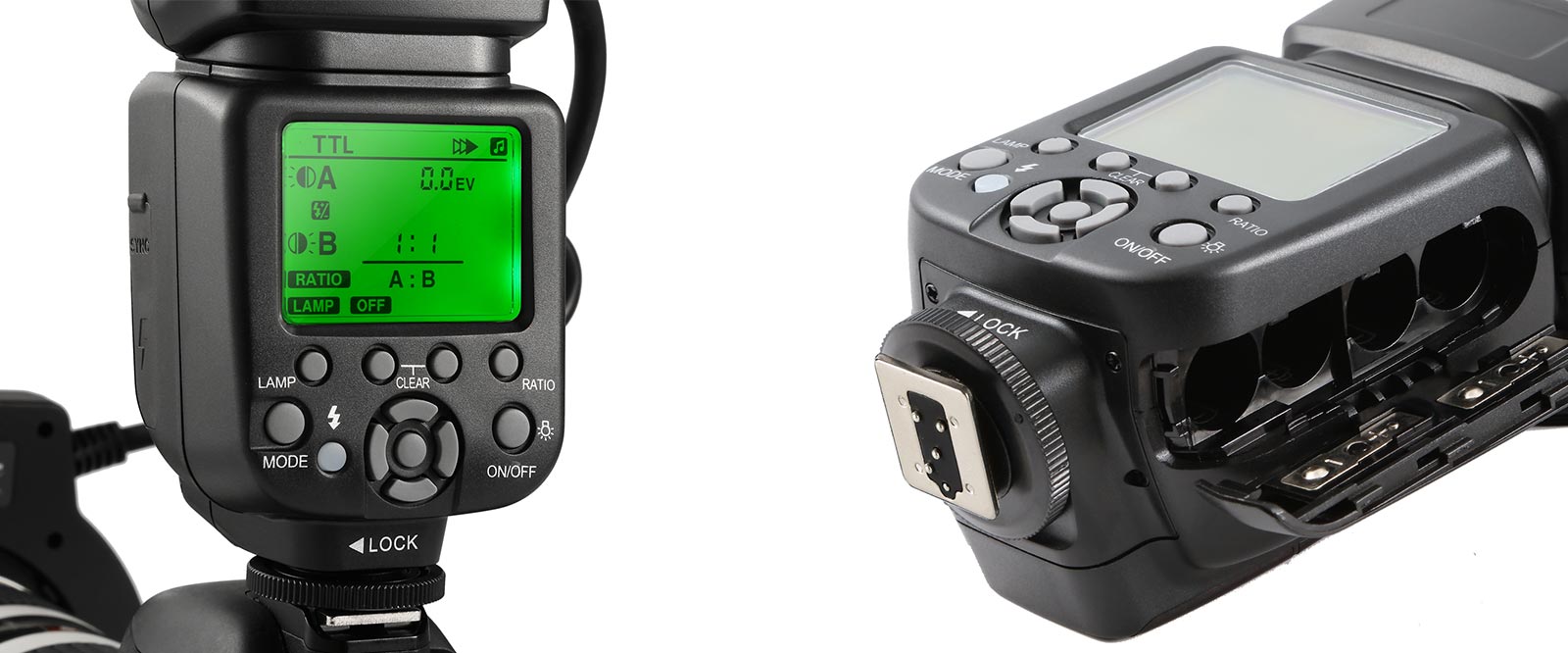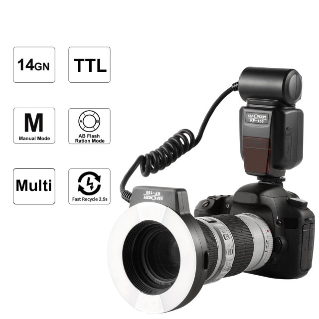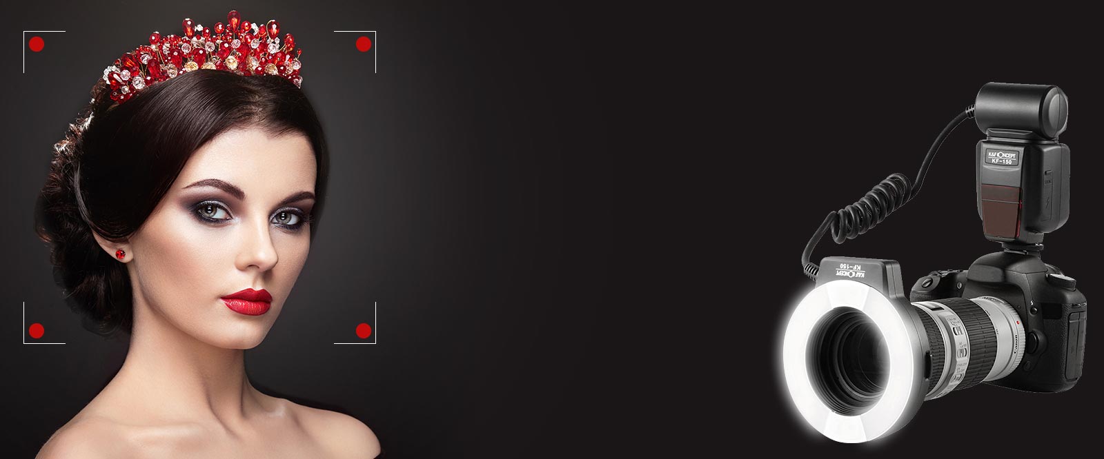 Profesionalni obroč za makro bliskavico, primeren za makro fotografiranje, znanstvene raziskave, medicinsko in osebno fotografijo na zelo majhni razdalji. Posebej zasnovan za fotoaparate Canon DSLR.