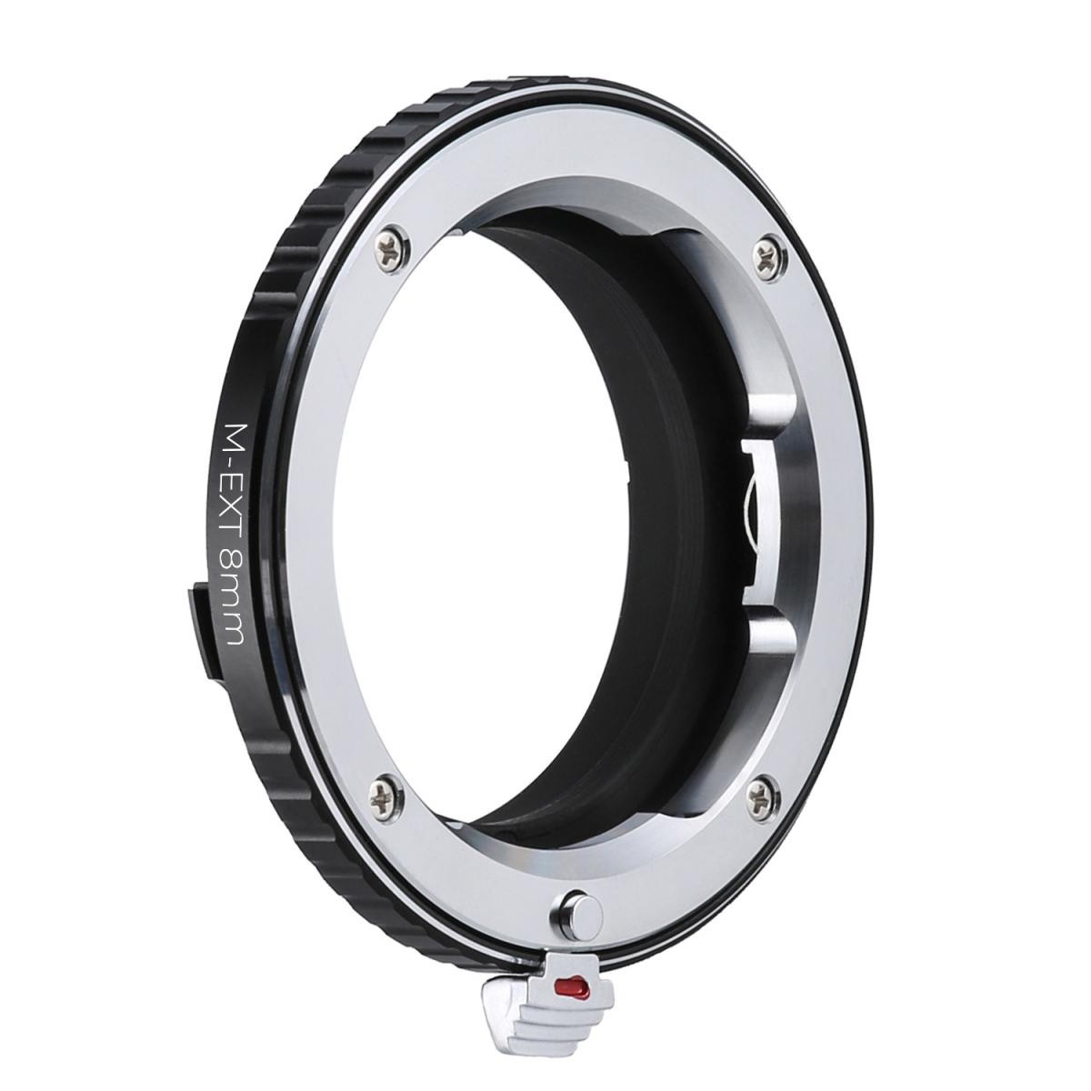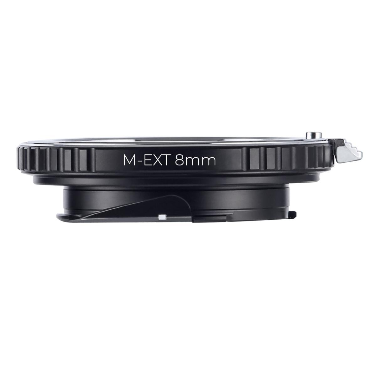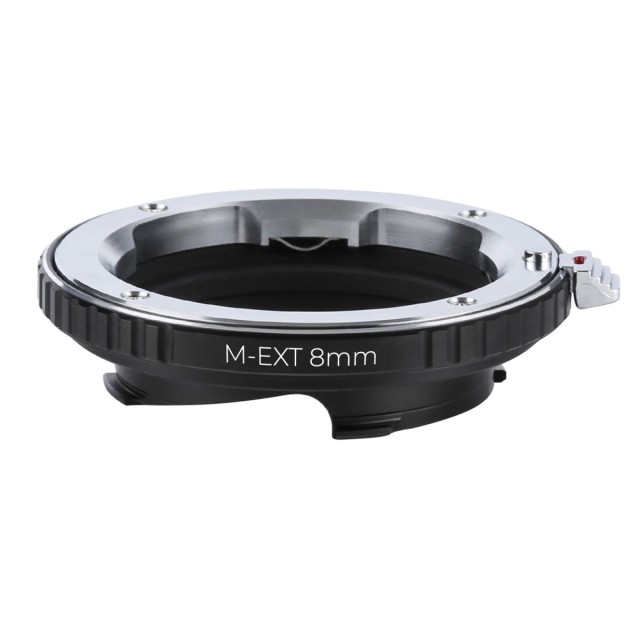 Adapter K&F Leica M Lenses to Leica M Mount M-EXT 8 mm omogoča natančno namestitev objektivov Leica M z popolnim ročnim nadzorom, vključno z ročnim ostrenjem, prednostjo zaslonke in neskončnim ostrenjem. Izdelan je iz trpežne bakreno-aluminijeve zlitine, ima gladko bajonetno povezavo, poravnavo z rdečo piko in protirefleksno notranjo oblogo, ki preprečuje razpršeno svetlobo.